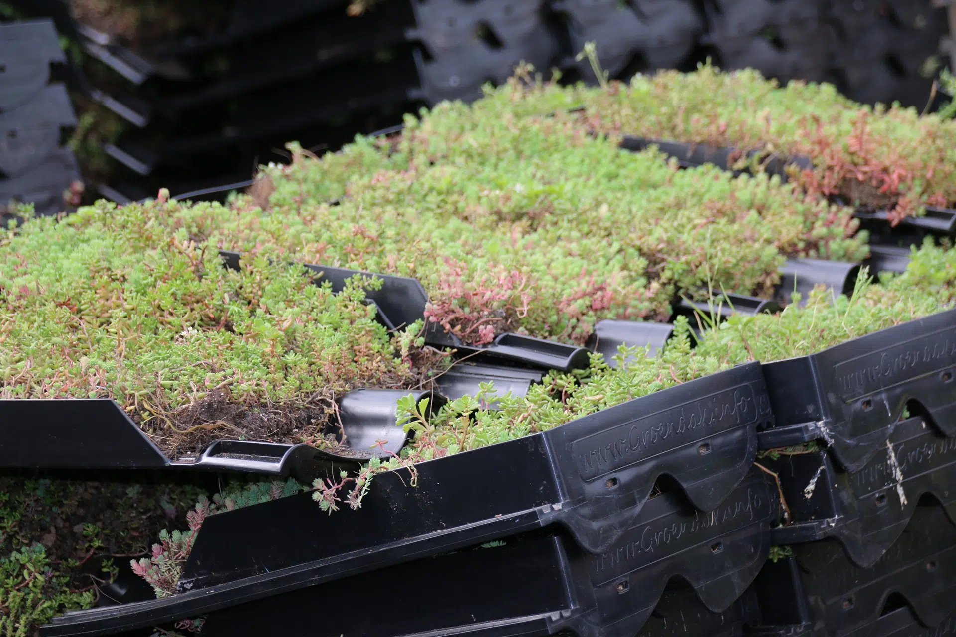 De groendakpannen hebben een lange levensduur. Water geven bevelen wij aan, zeker op het schuine hellende dak. Het kunststof heeft een lange levensduur van gemiddeld 40 tot 50 jaar en kan weer gerecycled worden, zo zijn ze circulair en gaan ze aantoonbaar langer mee dan traditionele dakpan.